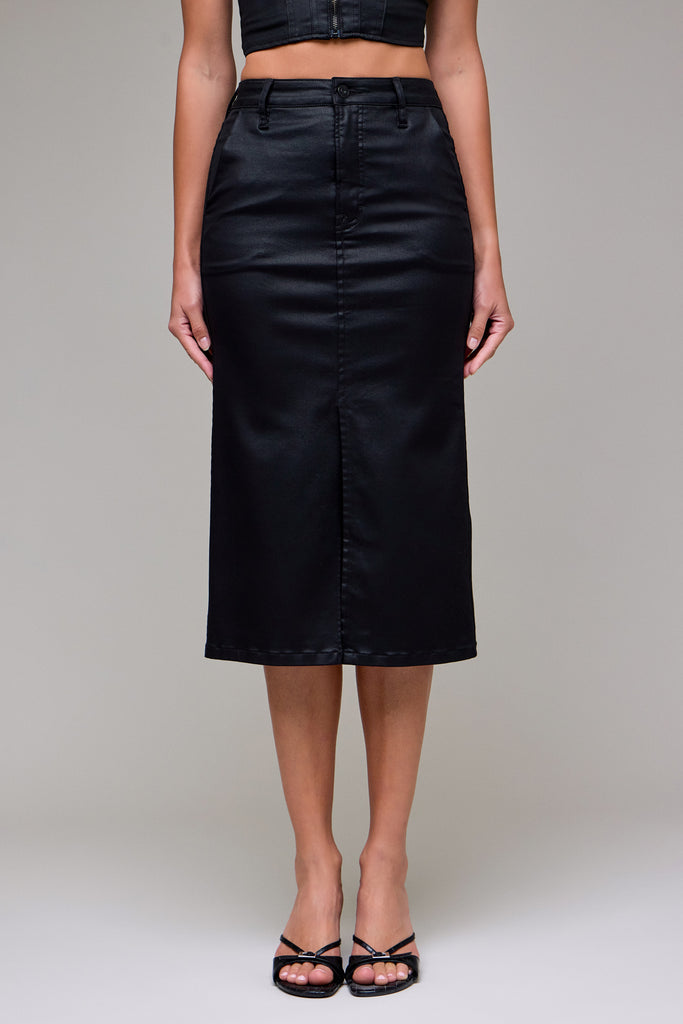 [PEYTON] Coated High Rise Front Slit Midi Skirt