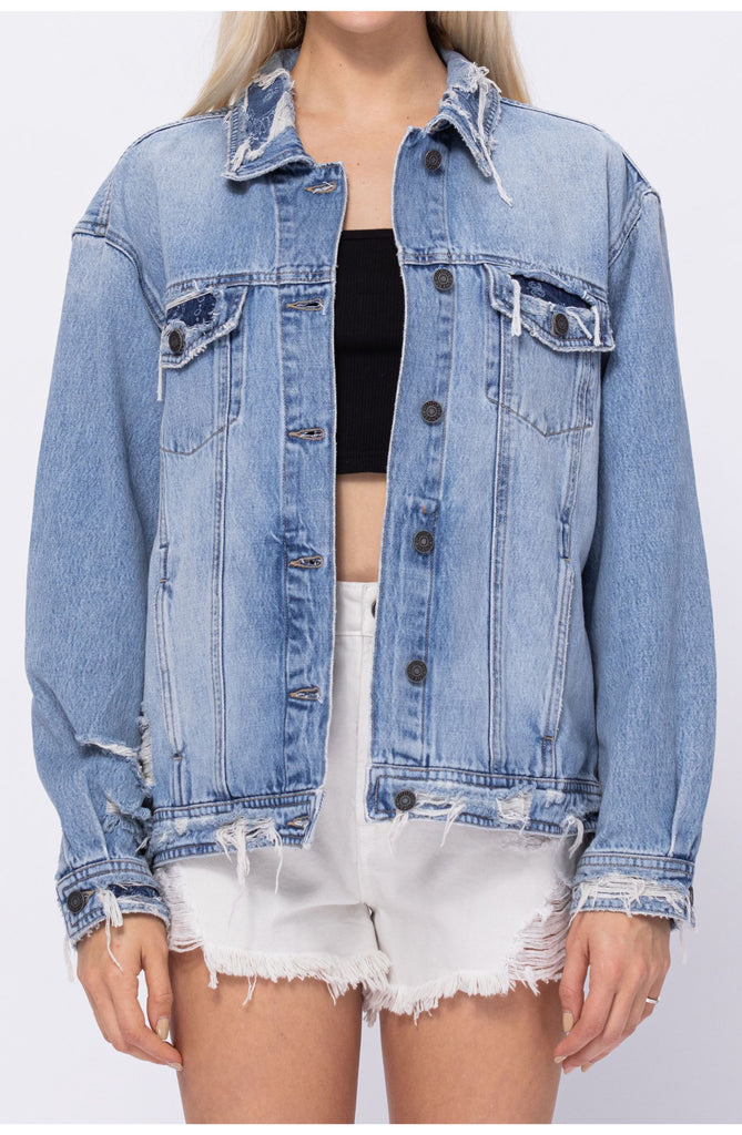 [DAKOTA] Light Wash Bandana Repaired Oversized Jacket