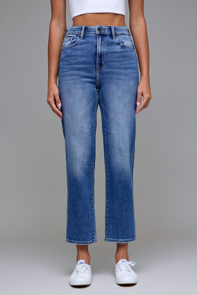 [TRACEY] Dark Clean Stretch Cropped Relaxed Straight Jean