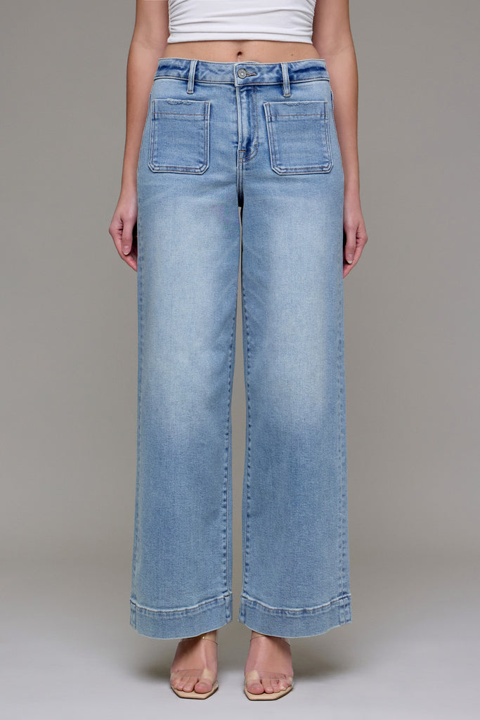 [NORI] Light Wash Front Pocket Stretch Wide leg