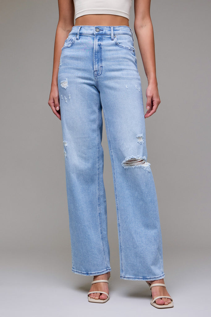[LOGAN] Light Wash Distressed 33" Inseam Dad Jean